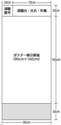 上部の演題名・所属・発表者名(20cm× 70cm)は各自でご用意ください。演題番号(20cm× 20cm)は学術集会事務局で用意いたします。