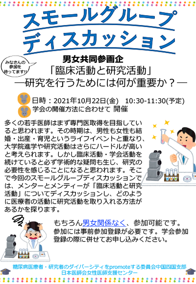 | 演者: | 「基礎研究と臨床の間で考える糖尿病合併症」 中司 敦子(岡山大学病院 腎臓・糖尿病・内分泌内科) |