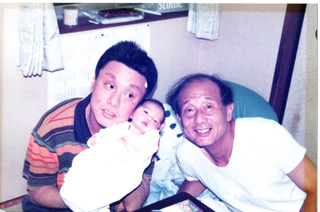 | 息子の産まれた日:父(産科医)と息子と若かりし日の会長 |