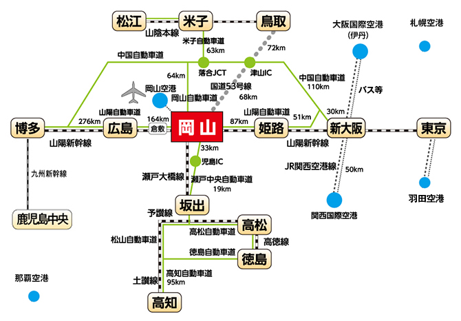 ◆交通アクセス ◇航空機での所要時間 ◇岡山空港から会場までの所要時間
