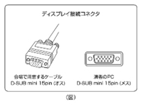 | 2) | 会場で用意するプロジェクターへの外部出力ケーブルコネクタの形状は、「Mini D-Sub 15ピン(図参照)」です。この出力端子を持つPC をご用意いただくか、この形状に変換するコネクタを必要とする場合には必ずご持参ください。デジタル出力(HDMI)の出力端子しか無いPCはHDMI → D-SUBの変換アダプターも必要です。電源ケーブルもお忘れなくお持ちください。![]() |