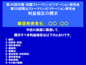 発表の最初か2番目のスライドにCOI状態について開示してください。