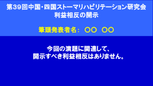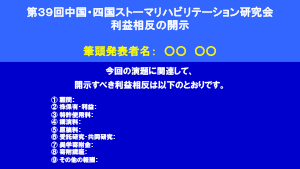 発表の最初か2番目のスライドにCOI状態について開示してください。